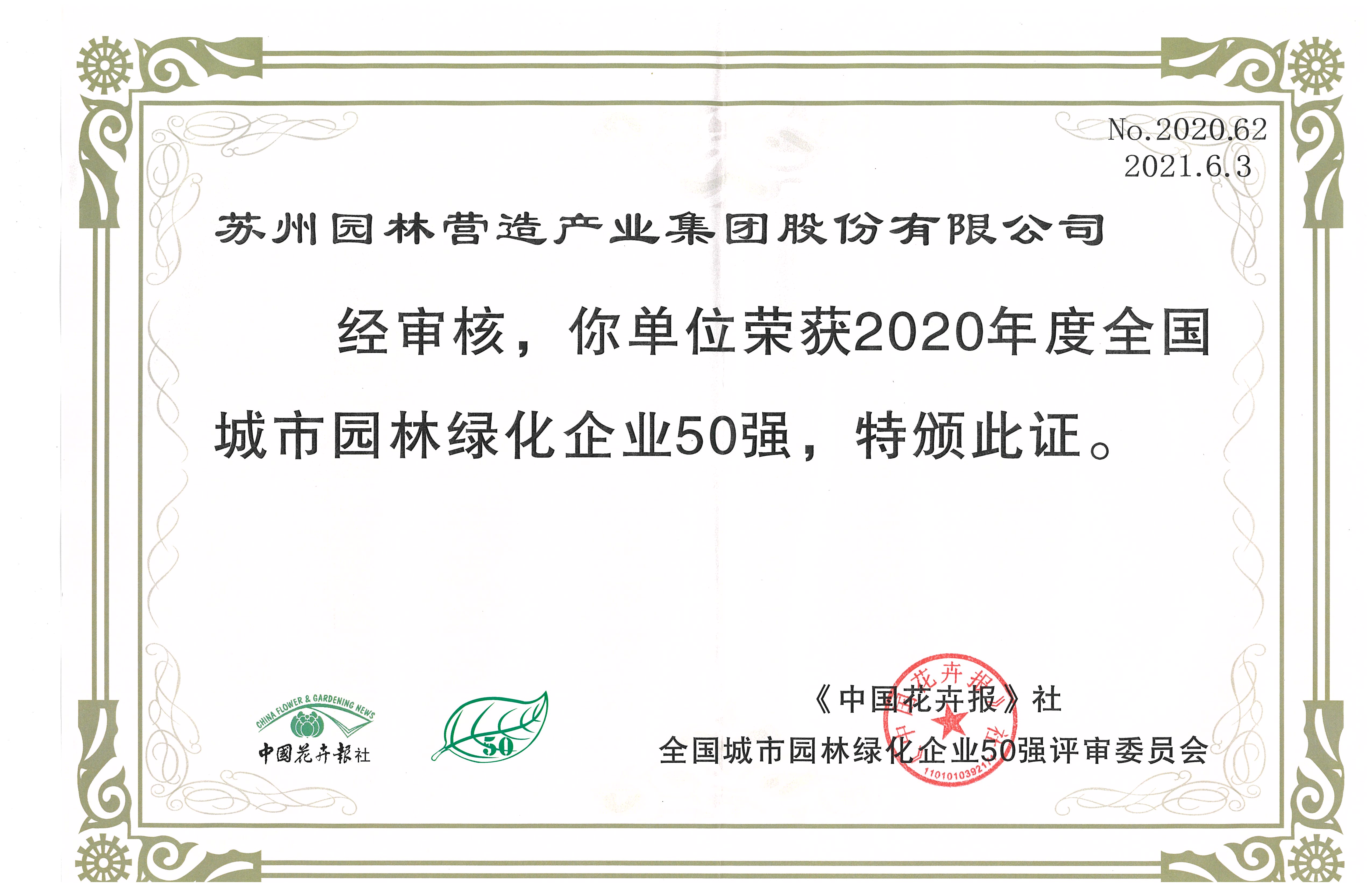 蘇州園林營造產(chǎn)業(yè)集團股份有限公司受邀參會,并獲得頒發(fā)“2020年度中國杰出經(jīng)營效率園林企業(yè)”、“2020年度全國城市園林綠化企業(yè)50強”大獎。